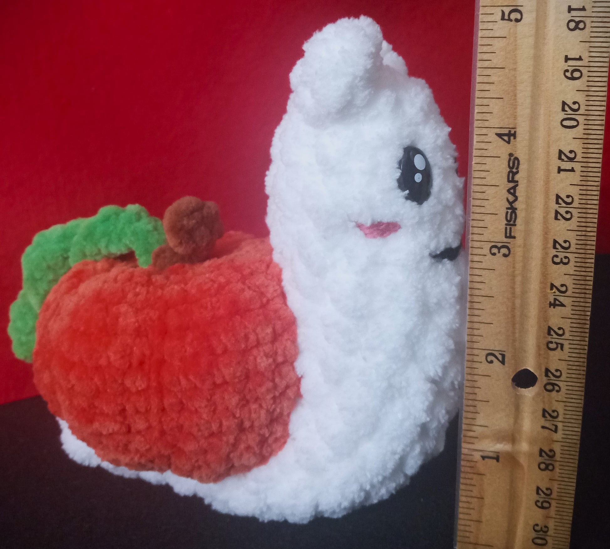 A palm sized snail friend with a pumpkin shell. Crocheted by me using the Gourdon the Pumpkin Snail pattern by GardenHoeCrochet. They have safety eyes that make them unsuitable for small children and pets. 5+ years old. Adult supervision recommended.